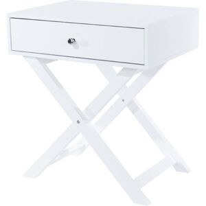 Available is three striking colour options, this campaign style nightstand features a single drawer with polished metal handle and a cross frame leg. Made from MDF, this bedside table ships flat packed but is easy to assemble and easy to clean and maintain all at great value prices.