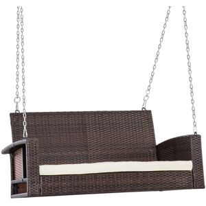 Enjoy the outdoor weather with friends, by relaxing on our Outsunny rattan bench. The seat is curved for an incredibly comfortable sitting experience, the armrests and back keep your body supported. Padded seat cushion for comfort, cover can removed and washed. Sit back, relax and enjoy your outdoor time with our garden hanging chair. Specifications: ● Colour: Mix Brown, Cream ● Material: PE Rattan, Galvanised Metal, Polyester ● Overall Dimension: 127L x 65W x 60H cm ● Seat Size: 110W x 53D cm ● Backrest Size: 110W x 49H cm ● Chain Length: 2.2 m ● Weight Capacity: 250 kg ● Item Label: 867-025V70CW Features: ● Two person size to enjoy with a friend ● Weather-resistant plastic wicker for a garden-ready rattan look ● Rust-resistant steel frame, with metal hanging chains ● Curved seat, with armrests and high back for body support ● Thick padded cushion for comfort - removable and washable cover ● Assembly Required