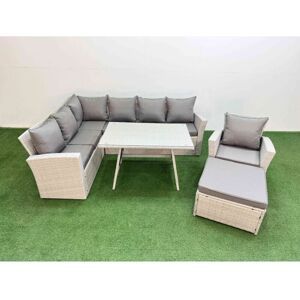 This patio corner sofa set can be used both indoors and Outdoor,with high quality PE rattan and durable galvanized steel construction for sturdiness and long lasting. Outdoor garden furniture can also be placed on the patio or balcony,The design of this rattan furniture is a perfect blend of country chic and modern minimalism, adding an elegant touch to your house. Set dimensions: •1 x 3 Seater sofa with two arm : 170L x 69W x 79H cm •1 x 3 Seater sofa with single arm: 160L x 69W x 79H cm •1 x Rectangular Dining Table :110L x 70W x 70H cm •2 x Big Footstool :65L x 65W x 34H cm •2 x Small fully assembled footstools :40L x 40W x 34H cm •2 x Chair: 74W x 69D x 79H cm Light Grey Mixed rattan with dark grey fabric .Color may vary due to light or monitor .we are unable to return the item due to this problem .Please consult before purchase if you have requirment on color saturation. Items Comes Flat Packed And Easy to Assemble,Sturdy Galvanized Steel Tube Metal Frames With Powder Coating To