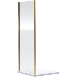 Ruwa 6mm Toughened Safety Glass Side Panel - 1900 x 900mm - Brushed Brass - Balterley Manufactured from 6mm toughened safety glass, the Ruwa Shower Side Panel is for use with a shower door to create a luxurious dedicated shower enclosure. Suitable for use with sliding or pivot shower doors. For use with matching shower doors and within a recess, the side panel has hidden fixings for a sleek minimalist look. Matching shower tray and brassware available for a consistent bathroom design. Product Highlights Shower side panel from Balterley Manufactured from 6mm toughened safety glass Brushed brass profile For use with a shower door or within a recess Matching shower door available from Balterley Matching shower tray and brassware available from Balterley Hidden fixings Door Adjustments - 872 - 890