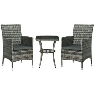 MHSTAR UK LTD Outsunny 3 Pieces Outdoor PE Rattan Bistro Set with 10cm Cushions, Patio Wicker Balcony Furniture, Conservatory Sofa Table and Chairs Sets for Garden,