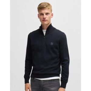 A super-soft 1/4 zip neck sweater by BOSS Menswear. Knitted in cotton blended with cashmere for a luxurious feel. This regular fit knitwear features a subtle tonal woven logo patch with rubberised BOSS branding at the left chest for a signature touch of class. A brand new silhouette to the BOSS Orange range but no doubt this will be a top seller season on season - Easy to wear with every outfit Regular fit 95% Cotton, 5% Cashmere Model: 50527585