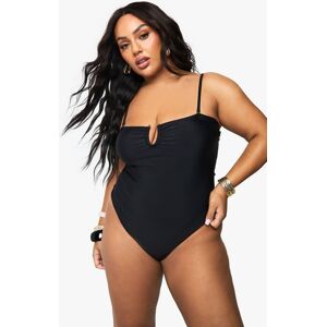 Boohoo Womens Plus Tummy Control Cross Over Swimsuit - Black Nylon - Size 28