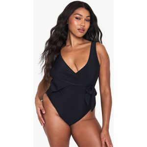 Boohoo Womens Plus Swimwear Essentials Tummy Control Wrap Swimsuit - Black Polyamide - Size 20 Uk | ✔ Check At Store | £14.99 |