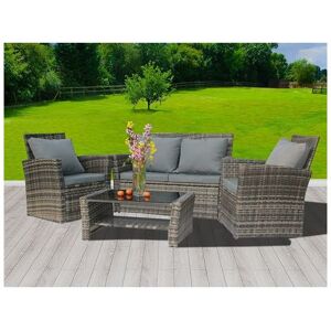KMS - birchtree 4PCS Garden Rattan Furniture Set Armchair Sofa Glass Coffee Table Patio RFS02 Grey | ✔ Check At Store | £258.99 |