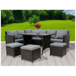 " Product Features: * 5 pieces Rattan Sofa Set complete with L Shape Corner Sofa and Coffee Table, fashion to be use at patio, garden, conservatory to enjoy leisure times. * Anti-rust powder-coated iron frame, sturdy and durable to use. * Manual premium PE rattan weave with wipe-clean surface, UV treated and fade resistant for long year use. * Removable thick padded cushions and pillows for long comfortable seating. * Waterproof cushions are covered with 180g polyester fabric, which are removable & washable zippered. * Included with a stable coffee table with removable tempered safety glass top. * Plastic feet to protect your floors. Elevates to protect the bottom of the frame from damage. * Sections are attached with stainless steel screws (included), which add the stability. * Arrives Flat Packed. Instruction manual is provided with the purchase along with all the relevant screws & fittings. Product Specification: * Model No.: RFS01; * Colour: Grey; * Material: Powder-coated Iron