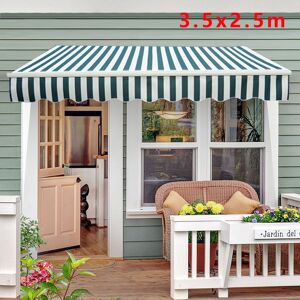 3.5 x 2.5m Multi-Stripe Patio Manual Awning Features: -Recommend to fix on concrete wall. -With Steel Square Torsion Bar and Aluminium roller, more durable than other seller,no torsion bar awning. -With two heavy duty cables in the center joint of arms makes it easier to project and retract. -Side covers on the roller support makes your awning elegant looking. -The specially designed aluminium arms are adjustable to enable you to alter the slope of the awning from 5 degrees to a relatively steep tilt of approximately 35 degrees from the horizontal. -Retractable, can be opened as much or as little as you like up to the maximum projection. -Steel crank handle is on the left as you face the awning (same as shown in picture), and can not be moved to another side. Specifications: -Steel Square Torsion bar: 35x35x1.2mm -Aluminium front bar: 47.2x35.6x1.2mm -Aluminium support arm: 47x28x1.2mm, 37x20x1.2mm -Fabric material: PU coated water-resistant 300g/m2 polyester fabric. -A printing error