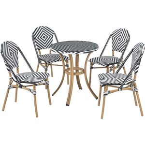 BELIANI 4 Seater Garden Dining Set Black White Rattan Round Table Chairs Aluminium Frame | ✔ Check At Store | £539.99 |