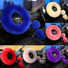3x Car Steering Wheel Cover Furry Fluffy Genuine Thick Australian Wool Universal