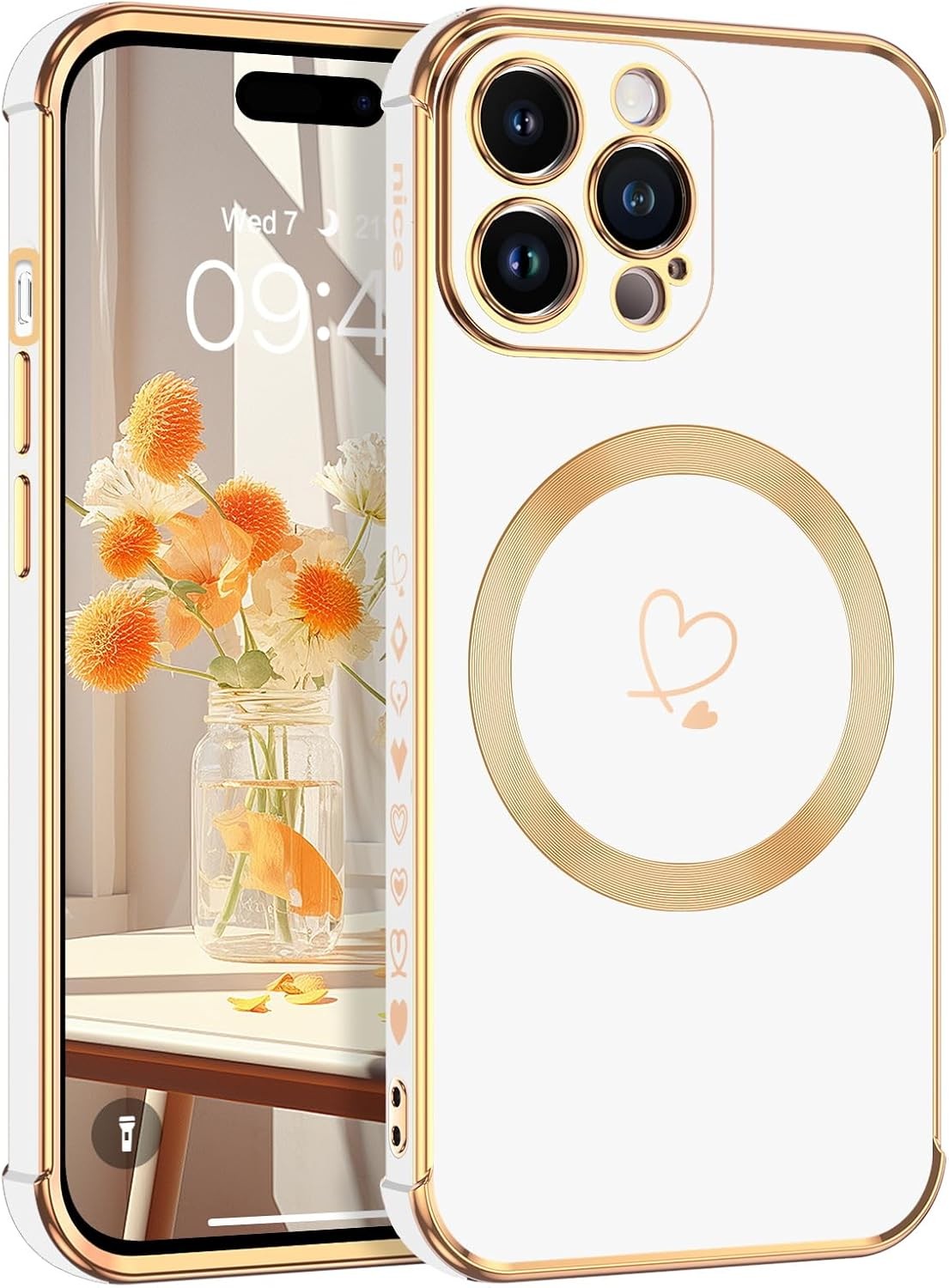Plating Cute Heart Magsafe Case for for iPhone 17 16 15 14 13 12 11 Pro Max Plus
