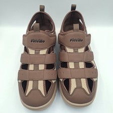 FitVille Diabetic Sandals Men's Extra Wide UK 12 Shoes Brown Adjustable Strap