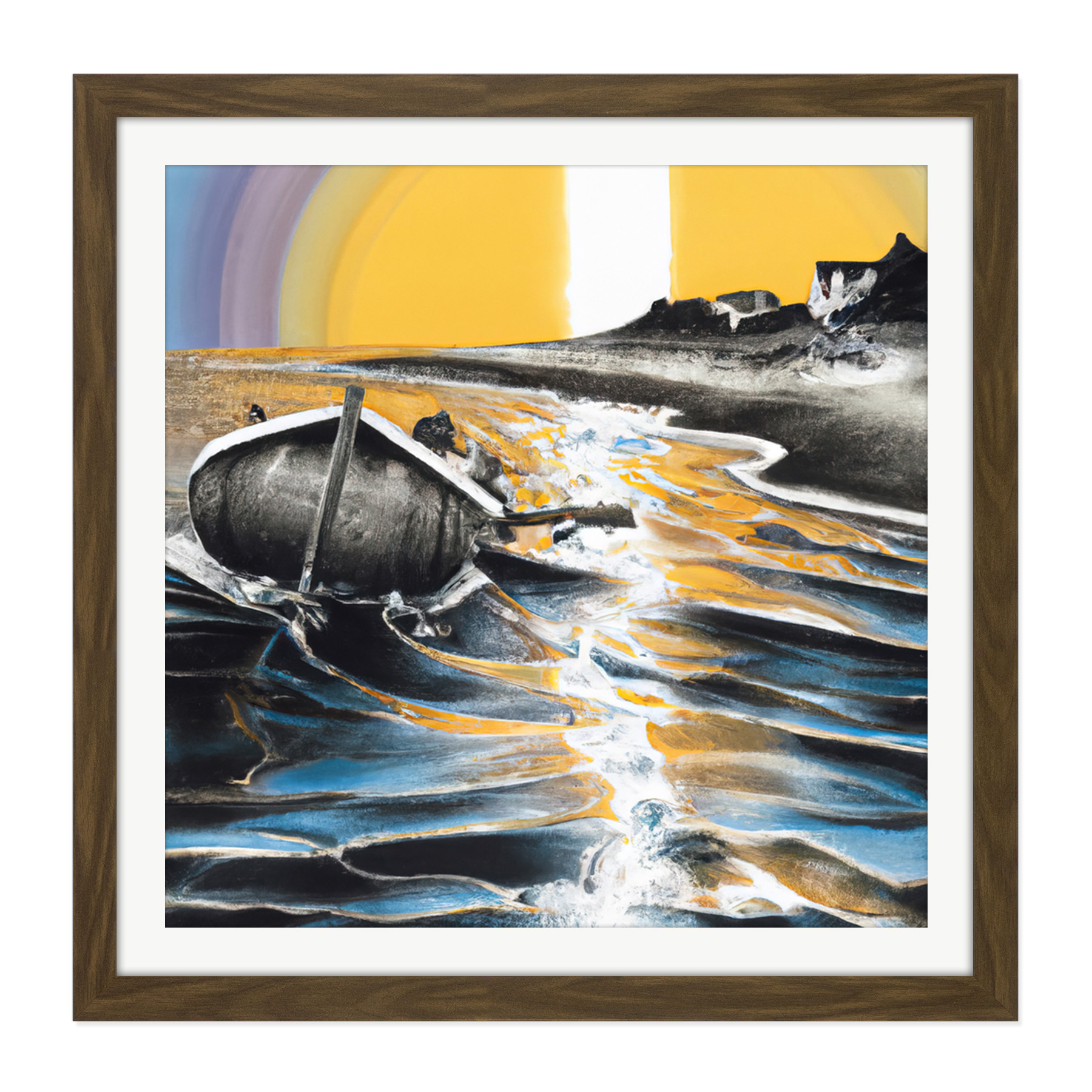 Sunset Row Boat Shoreline Ocean Waves Oil Square Frame Print Picture Wall Art | ✔ Check At Store | £29.99 |