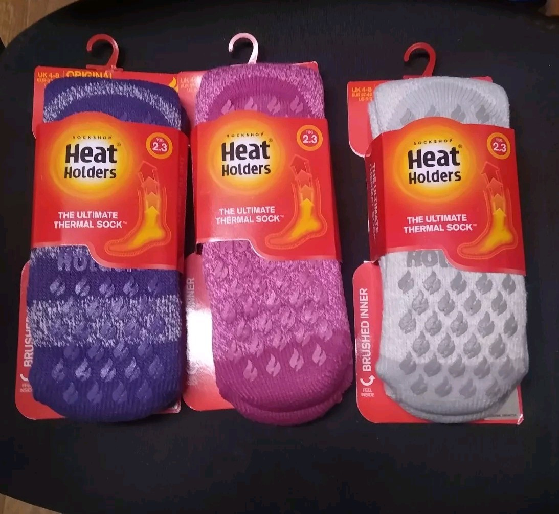 With a luxurious long pile cushioning, these thermal socks will help keep feet warm and comfortable throughout the winter months and those chilly spring mornings. 3 Pairs of Super Warm Heat Holders thermal slipper socks.