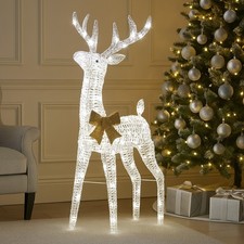 Look, Christmas reindeer is here to celebrate the Christmas with you! Reindeer is decorated with pretty pine cone bow and covered with shinny sparkling glitters. 1 x Christmas Reindeer. Sturdy structure and durable material make it water, snow and wind resistant.