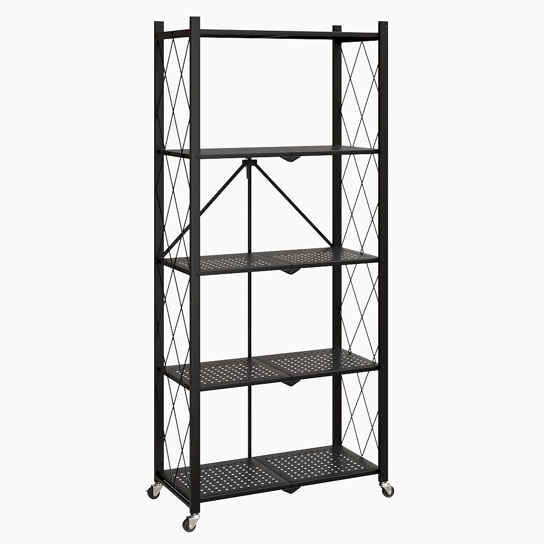 It's easy to transport and carry. Number of Tier: 5 Tier. Feature: Large Load-bearing Shelves, No installation required, Foldable. Large Lockable Wheels: The utility shelf features 4 easy-glide durable rubber wheels for convenient transportation and easy corner cleaning.