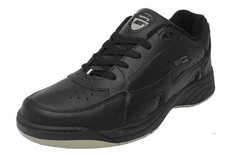 A SOLID QUALITY TRAINER. LACE DESIGN. NON SLIP HARD WEARING SOLE. BLACK FAUX LEATHER UPPER. BLACK SOLE.