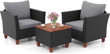 Grey 3-Piece Rattan Garden Bistro Set Patio Chairs Table Outdoor Furniture