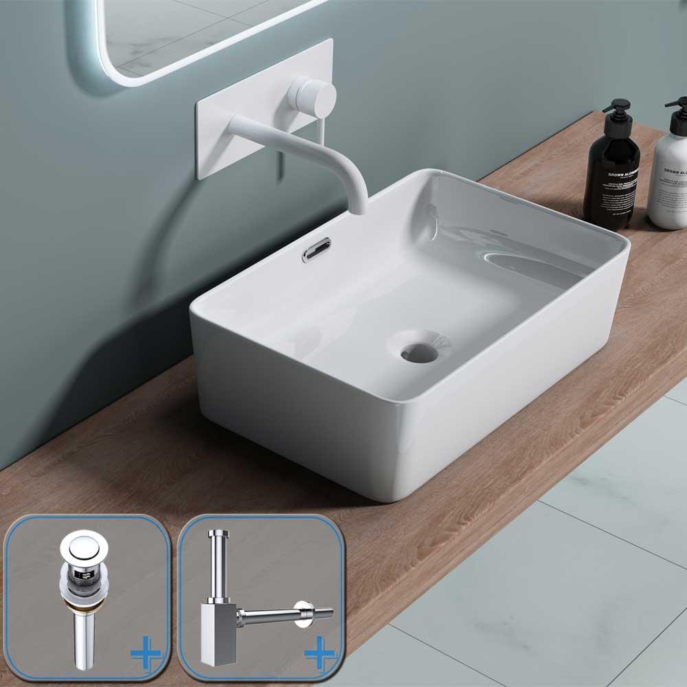 Durovin Bathrooms Ceramic Bathroom Basin - Countertop Sink Vessel - Rectangular Washing Bowl (480 x 315 x 140mm). Mixed Basin Range Wall Hung Counter Top Basins Semi Recessed Basins Pedestal Basins Vanity Units Cloakroom Double Pedestal Basins.