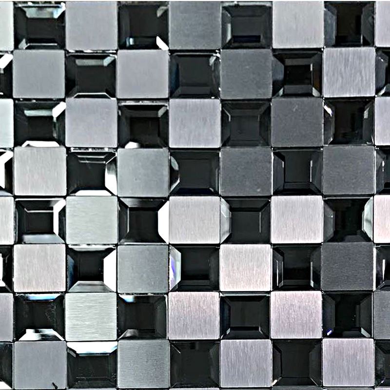 GLASS MOSAIC TILES WALL MIRROR AND STEEL SQUARES MOSAIC WALL TILES 8MM. The foil backed glass squares add an attractive variation in depth to the mosaic. The design and quality are second to none. The tiles are 8 mm thick (not 6 mm).