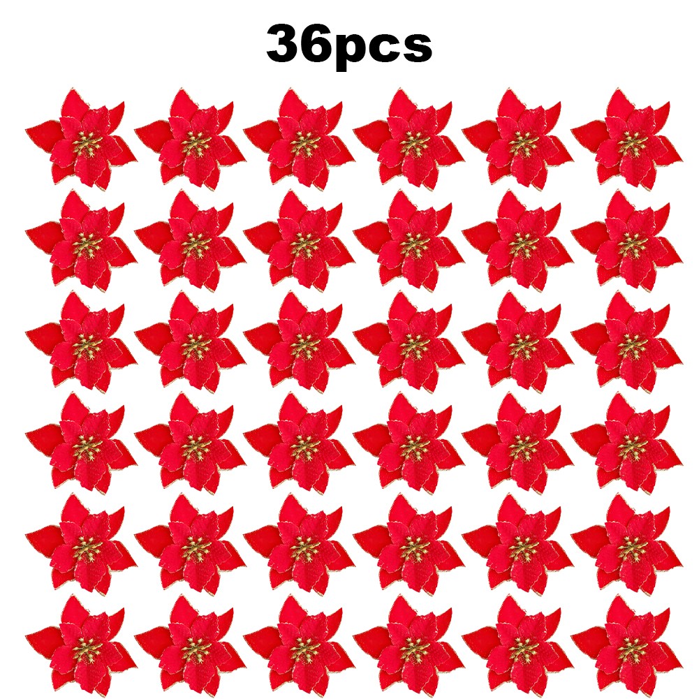 36 Christmas artificial flowers. The real color of the item may be slightly different from the pictures shown on website caused by many factors such as brightness of your monitor and light brightness.