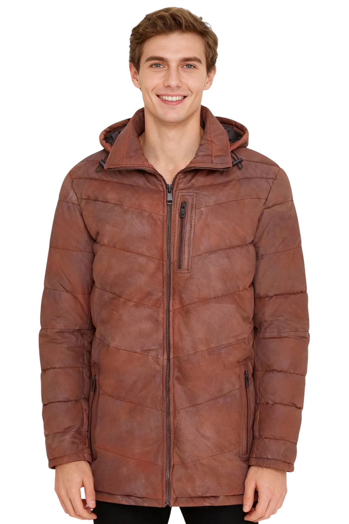 The warm, padded design features a modern chevron quilt pattern and a practical removable hood for ultimate protection. With six pockets, it perfectly blends warmth, style, and utility for winter wear.