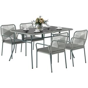 • Five-piece rattan dining set: Enjoy alfresco dining with this set, including a rectangular table and four stackable armchairs for easy storage, suitable for any outdoor space. ● Material: Steel, PE Rattan, Polyester, Tempered Glass, Sponge, PP Cotton.