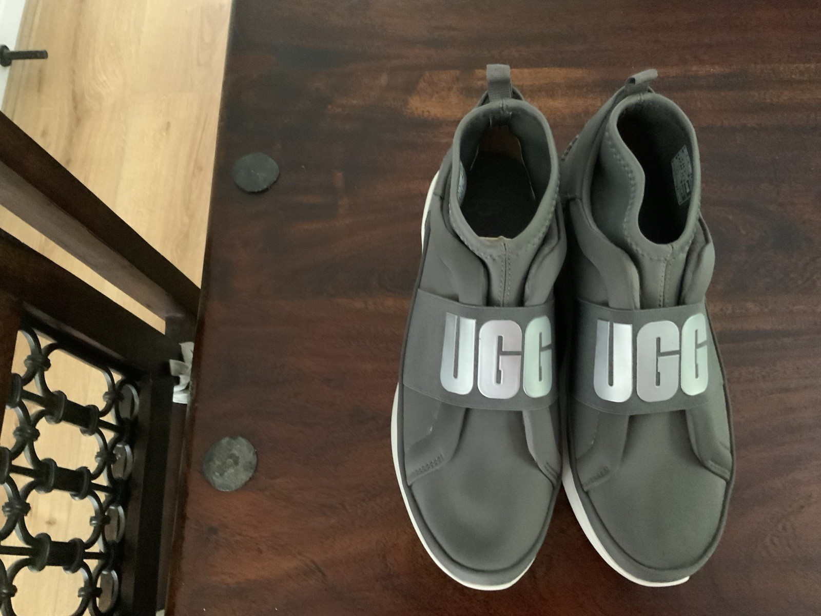 I’m selling this brand new pair of UGG trainers. Never been worn - still has the original label on the soles of the shoes. I just don’t have the box. There greywith a white sole. Uk size 6. The look fabulous on.