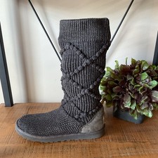 Ugg Australia Classic Cardy Grey Chunky Knit Button Boots Womens Size 7