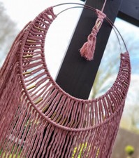 large dream catcher wall hanging. Large macrame dream catcher ‘autumn themed’ 92cm high. Consists of three colours matching throughout the frame and feathers. Colours include macrame cotton wool, mustard and grey. Item is one piece with three large attached feathers, hung by a decorative wooden ring. stylish home decor. Ring circumference is 39cm. each feathers height is between 31 and 36 cm. Ring debt is 2 1/2 cm. Overall 92 cm in total height.