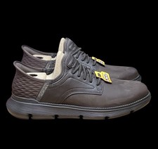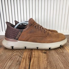 Shoes do show some wear. Overall still in good condition. Please see pics for details. The Skechers Slip-Ins Garza Gervin Men's Shoes in size 14 wide are a stylish and comfortable option for casual wear. Made of brown leather with a slip-on closure, these shoes feature a round toe and lace accents. The rubber outsole provides traction, while the memory foam insole ensures cushioning and support for all-day wear. Whether for travel or everyday outings, these Skechers Slip-Ins are a versatile and practical choice for the modern man.