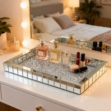 Glass Vanity Tray with Crushed Diamond Perfume Tray Bedroom Dressing Table Tidy | ✔ Check At Store | £26.91 |