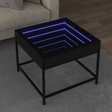 The unique coffee table with an LED infinity mirror is suitable for different places. Stable and durable material: Engineered wood is a durable and stable material with a smooth surface that is resistant to moisture, warping, and splitting, making it a reliable choice for a variety of projects. RGB LED Lights for a pleasant ambience: This table features LED lights that can be easily adjusted to create a personalised light show. You can customise the modes, colours, and brightness to enhance the ambience of your interior space. Sturdy tabletop: The sturdy tabletop of the living room table is great for placing your drinks, food and other decorative items. Multiple applications: This coffee table serves multiple purposes.