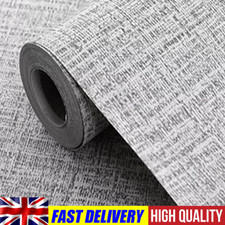 10M Grey Fabric Linen Effect Textured Vinyl Plain Thick Wallpaper Living Room UK | ✔ Check At Store | £5.95 |