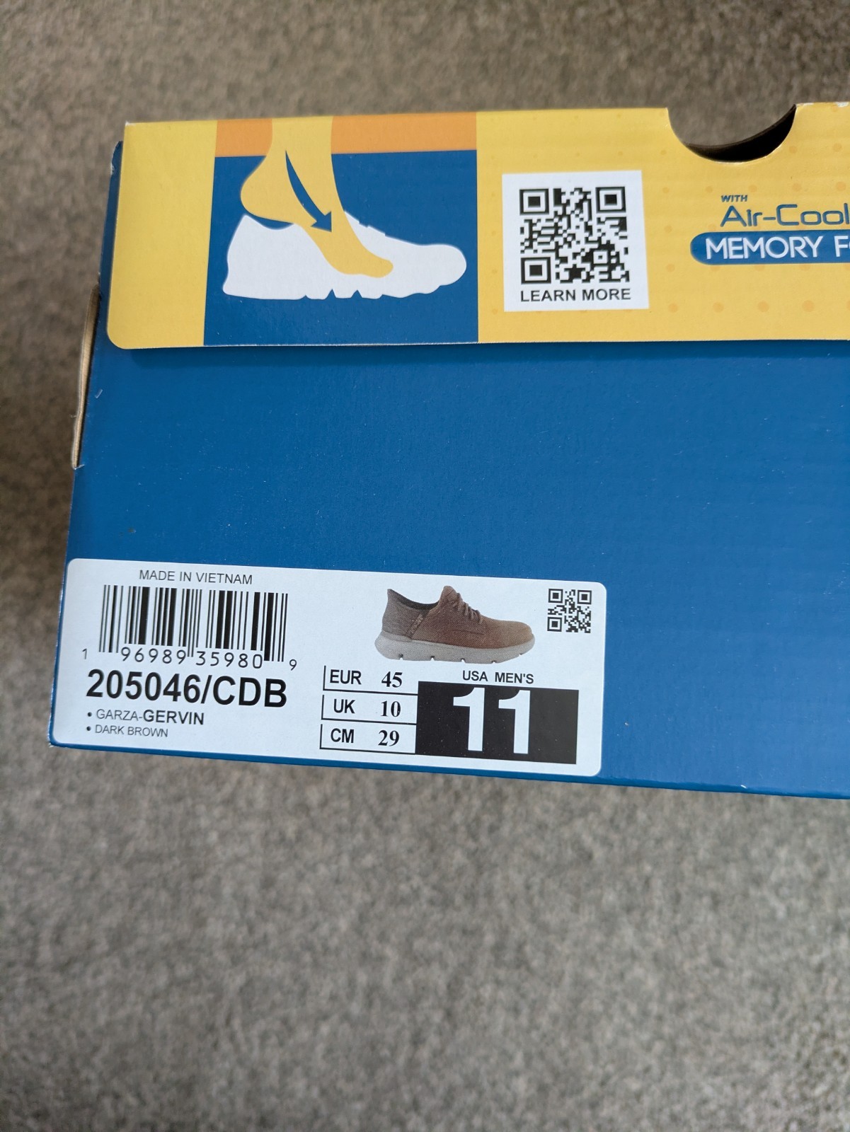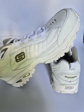I was bought these several months ago as a present to wear as a slip in semi smart shoe. They have not been worn and come with the original box. These slip ins are so easy to get on and off and the only reason for the sale is because I have 3 other pairs that I regularly wear. This is what Skechers describe them as below: Skechers Hands Free Slip-ins® for an easy fit Heel Pillow® holds your foot securely in place Skechers Air-Cooled Memory Foam® cushioned comfort insole Skechers Goga Mat Arch™ cushioning for added support Charcoal infused insole neutralizes odor Skechers Classic Fit™ Smooth leather upper with stretch laces and plain toe Lightweight midsole with flex cutout detail Flexible traction outsole 1 1/4-inch heel height Skechers® logo detail