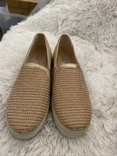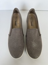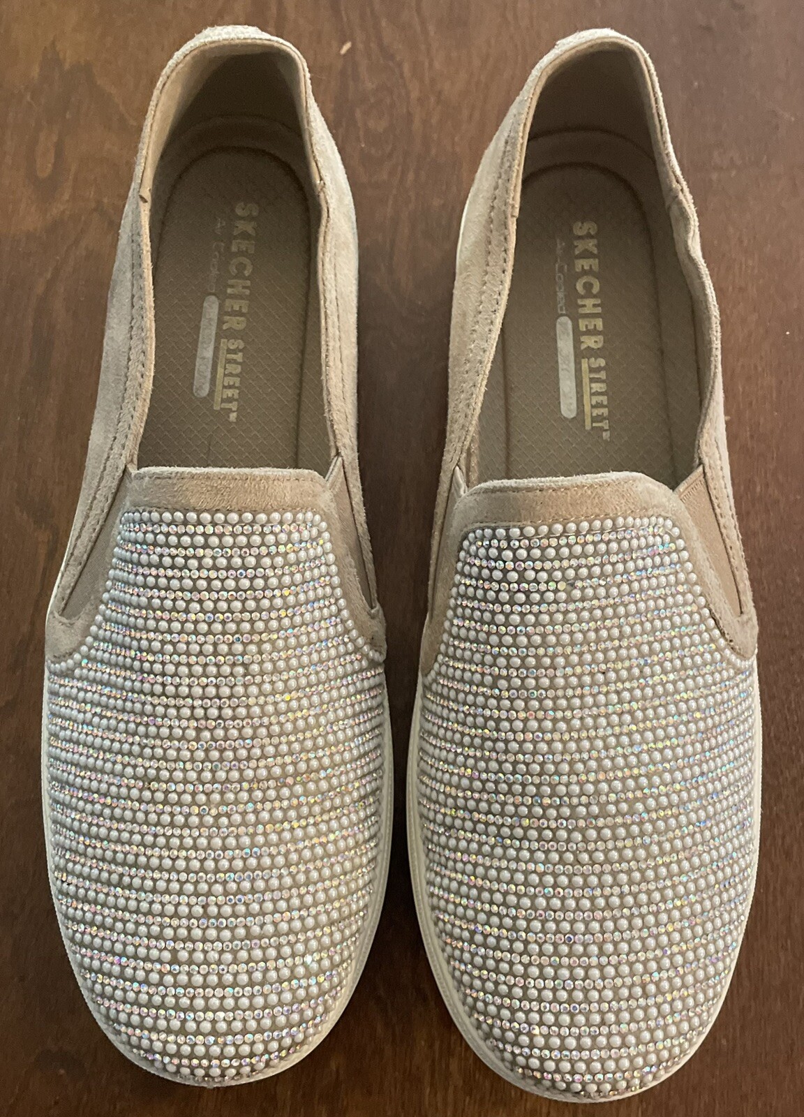 BLING ALERT! The taupe color and solid pattern make them a versatile option for all seasons, while the beaded, rhinestone and logo accents add a touch of glamour. These slip-ons feature a low heel style with a round toe shape and a low-top shoe shaft style.