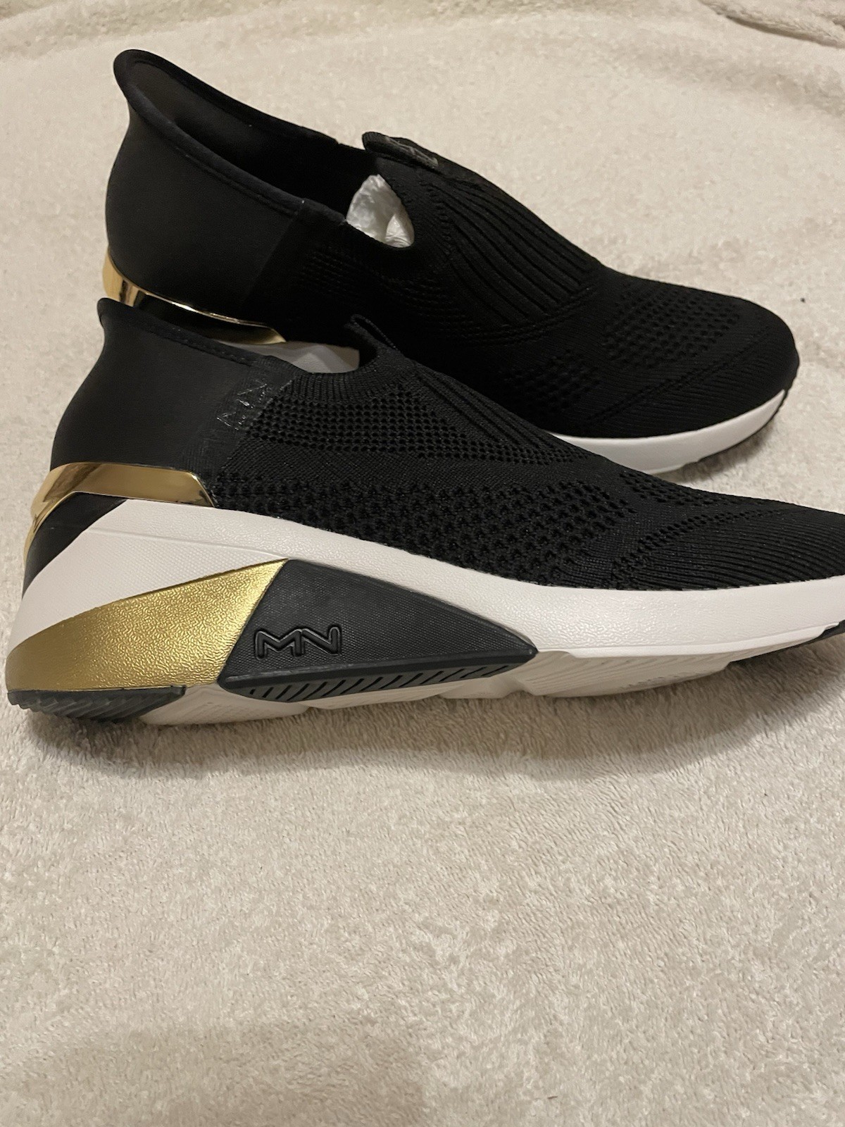 These Skechers Women's Slip-On Memory Shoes in UK size 6 are perfect for casual occasions during the summer season. The low-top sneakers feature a round toe shape with a slip-on closure for easy wear. The flat heel and rubber outsole provide comfort and stability for walking activities. The black and gold colour and logo accents give the shoes a stylish look, while the foam insole ensures a pleasant fit. Made with synthetic upper material and foam insole, these Skechers shoes are a reliable choice for everyday wear.