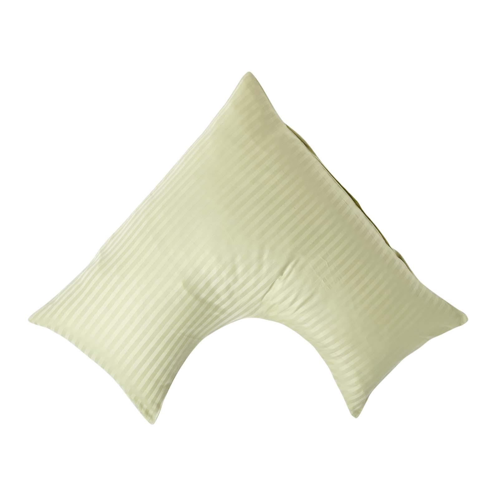100% Cotton V Shaped Pillowcases Luxury 330 TC 500 TC Equivalent Satin Stripe Washable. Protect your V-shaped support pillow with our buttercream, 330 thread count 500 thread count equivalent, Egyptian cotton pillowcase with a soft satin stripe and practical buttoned opening.