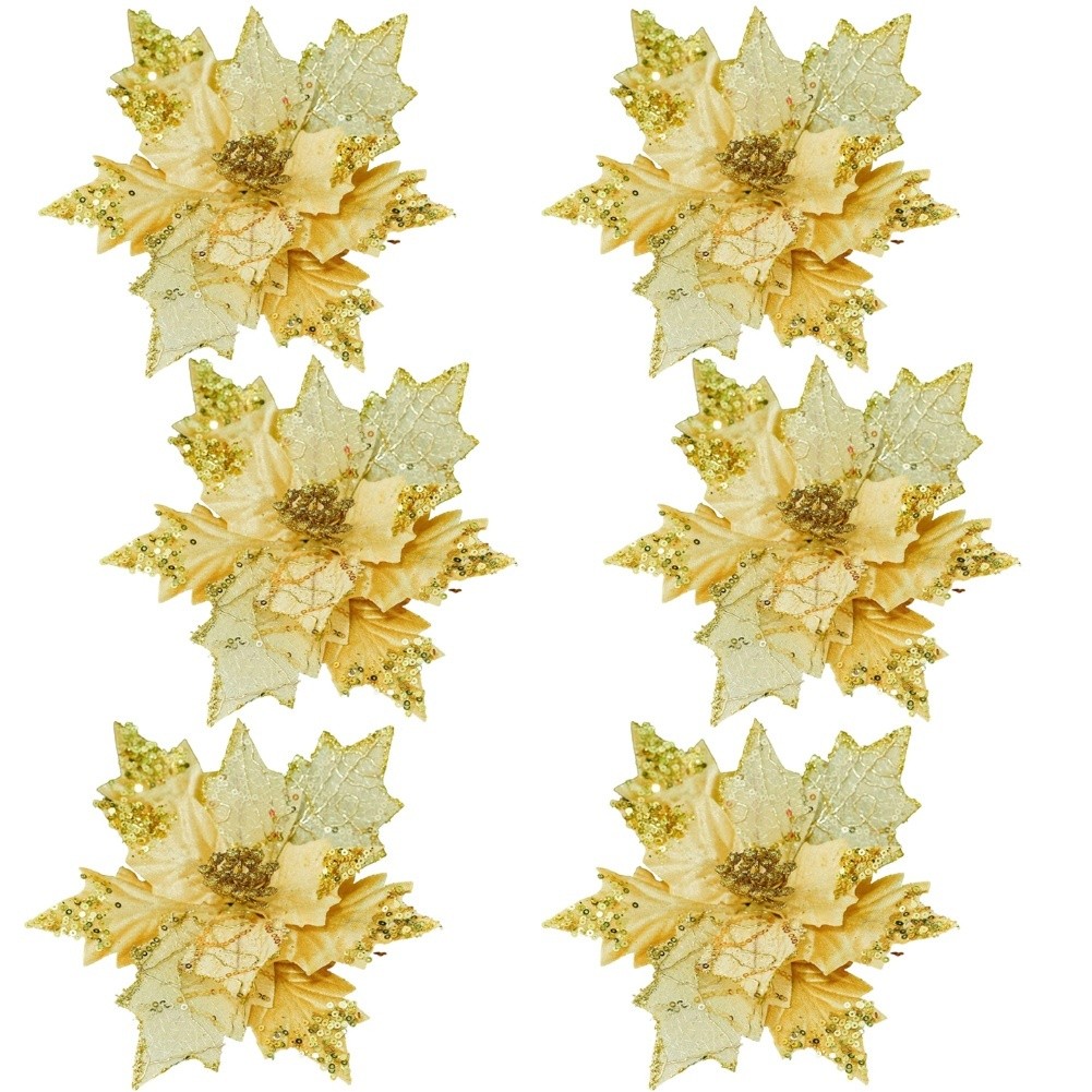 6 Glitter Poinsettia Flowers 20cm for Christmas Tree Holiday Decoration Set
