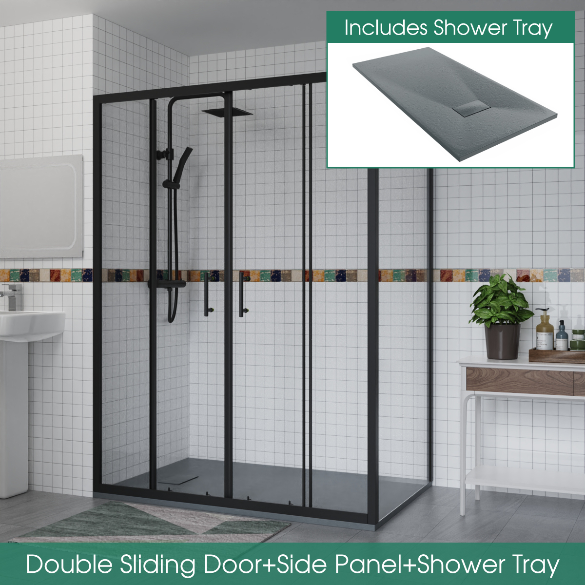 Toilet Basin Suites. Back to Wall Toilet Units. Shower Enclosure Suites. Double Sliding Door Shower Enclosure. Bathroom Suites. Full Bathroom Suites. Bathroom Furniture. Side Panel and Shower Tray included.