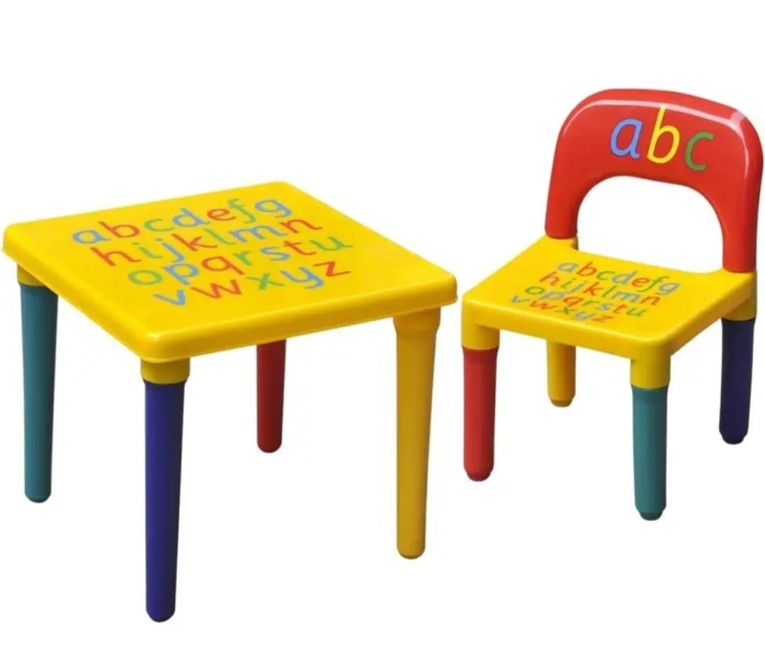 The ABC Alphabet Plastic Table & Chair Set by trendi is a vibrant and durable kids furniture set that includes a table and chair. Made from plastic, this set is perfect for children's play and activities. Easy to assemble and no additional parts are required, this set is ideal for creating a fun and learning-friendly environment for kids in their home or playroom. Personalisation is not available, but the bright and eye-catching design will surely engage and entertain young minds.
