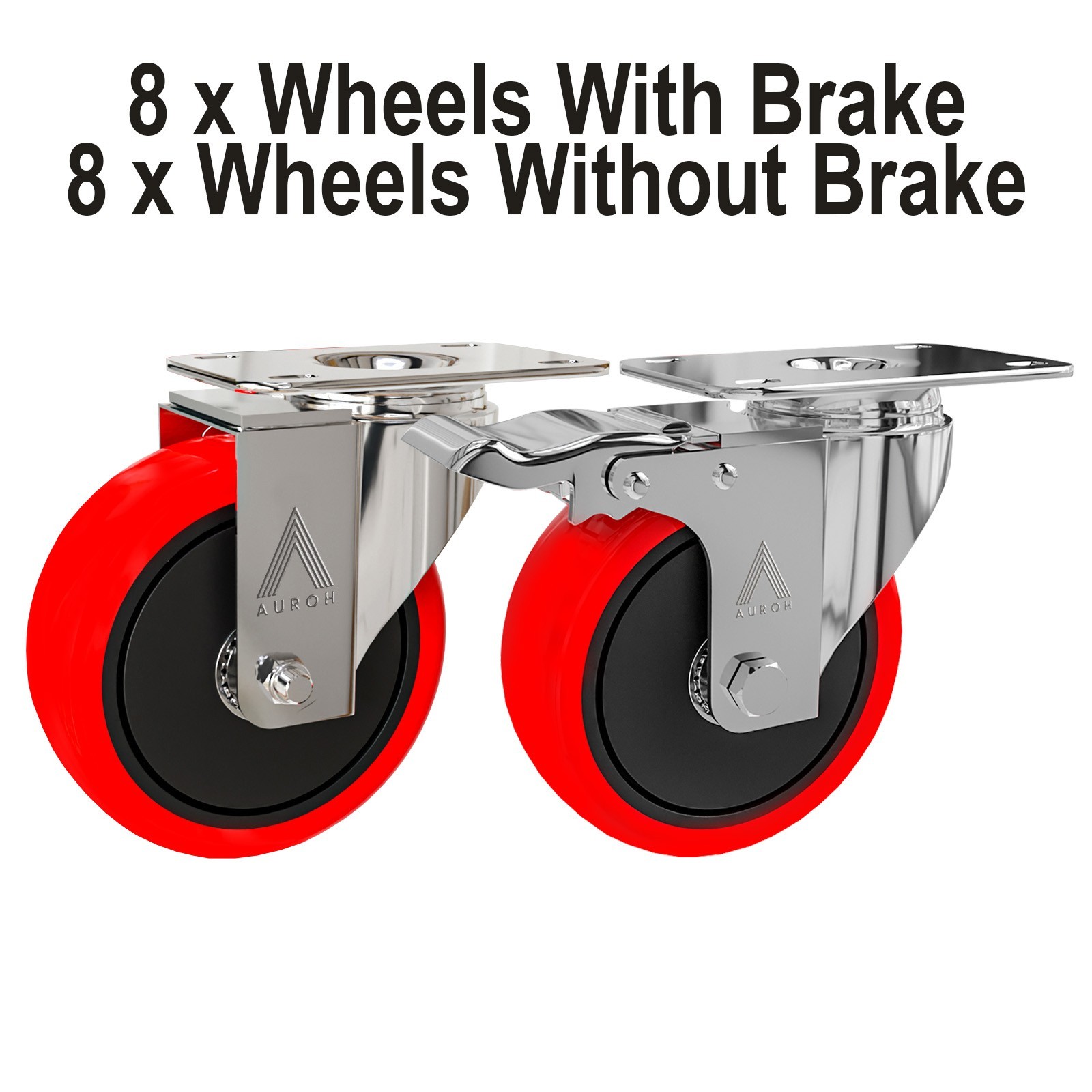 Heavy Duty: Supports up to700kg per set of 4 caster wheels. Main Set (4 x 100mm PU Castors). 360° Swivel: Effortless manoeuvrability, even in tight spaces. 2 × Swivel Wheelswith Brake + 2 × Swivel Wheelswithout Brake.