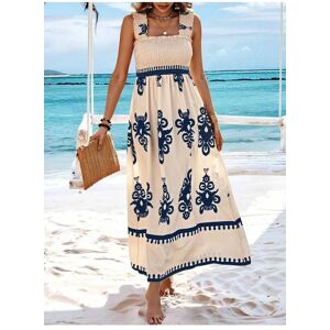 Everyday The Label Womens Smocked Printed Wide Strap Maxi Dress - Blue - Size Medium