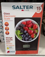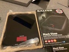 Salter 1150 BKDR Digital Kitchen Scales - Stylish Glass Design, Add & Weigh, Liquid & Dry Measurements, Easy-Read Red Display, Black