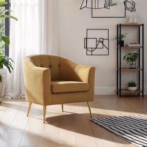 FWStyle Loretta Mustard Velvet Tub Chair Armchair - Modern Upholstered Accent Chair with Gold Hairpin Legs - Button-Stitched Detail & Cushioned Seat