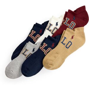 While this six-pair pack of Ralph Lauren Classic Sport Cushioned Socks are called ‘classic’, that’s classic after it’s been run through the unique Ralph Lauren Polo design filter! The socks in his set have been created in a mix of six strong, striking colourways that are a world away from a ‘basic’ white sports crew sock. The tops of the legs have contrast bands with classic sports striping, and embroidered with the brand’s signature Polo Pony emblem in contrast colours. Ralph Lauren Classic Sport Cushioned Socks are made in a very soft, breathable yarn blend, with fully ribbed legs, cushioned comfort soles and smooth toe seams to protect the feet at all times. An arch support band is woven in, lifting the mid-foot and helping keep the socks in place.