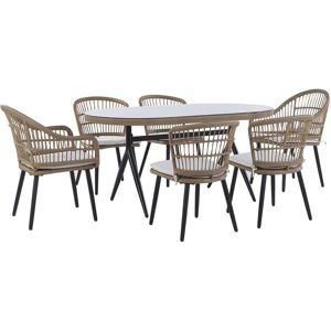 BELIANI Garden Dining Set 6 Seater ALIANO II with Cushions PE Rattan Beige | ✔ Check At Store | £719.99 |