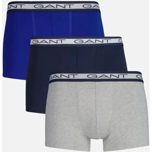 Great-value 3-pack of Gant men's boxer trunks in navy, grey melange, and a fine French blue Featuring a striking logo embroidery striped design, wrapping around the stretch waistband Without Fly / Pouch front Fabric Composition: 95% BCI Cotton / 5% Elastane Manufacturer Colour: Light Grey Melange MPN: 900003053-94 Our Collection at Boxers and Briefs contain only the highest quality Gant men's underwear, and these 3-pack boxer trunks are from the striped waistband logo range. Gant Men's Underwear Size Guide: Small = 28-30 inch waistband (71-76 cm), Medium = 32-34 (81-86 cm), Large = 36-38 inch waistband (91-97 cm), X-Large = 40-42 inch waistband (101-107 cm), XX-Large = 44-46 inch waistband (111-117 cm), XXX-Large = 48-50 inch waistband (121-127 cm)