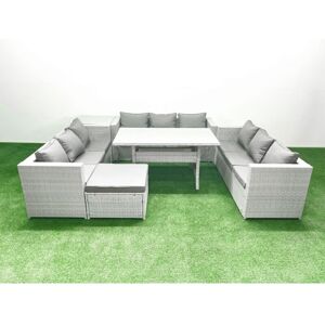 Create your personal oasis with our ergonomically designed rattan seating group. The deep seating profiles with thick cushions provide exceptional comfort, while the safety-tempered glass tables offer both style and functionality for relaxed outdoor living Pls kindly leave your mobile number at checkout for not delaying your shipment . Set Dimensions: • 1x Sofa with double armrest size: 176W x 65D x 66H cm • 1x Sofa with single armrest size:166W x 65D x 66H cm • 1x Chair:74W x 65D x 66H cm • 1x Side coffee table :65L x 65W x 66H cm • 1x Dining Table Size: 140L x 80W x 70H cm • Sofa Weight Capacity: 250kg • Table Weight Capacity: 50kg Dark grey mixed PE Rattan .Color may some difference due to light or monitor .we are unable to return the item due to color problem . Items Comes Flat Packed And Easy to Assemble,Sturdy Galvanized Steel Tube Metal Frames With Powder Coating To Prevent The Rust. Flat PE Rattan Completely Made By Hand, 5mm Thick Transparent Tempered Glass With Sucker On