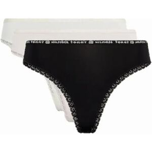 Great-value 3-pack of Tommy Hilfiger Women's Thongs in Black, Ivory, and Pale Pink Fabricated in a comfy microfibre stretch material Elegant floral lace trims Non Returnable Due to Hygiene Reasons Striking repeat script logo design interwoven into the stretch waistband Recycled fabric mix High-cut leg Fabric Composition: 79% Recycled Nylon / 21% Elastane Our Collection at Boxers and Briefs contain only the highest quality Tommy Hilfiger Womens Underwear. An elegant range within the collection is lace trim underwear, bringing feminine sophistication to the lucky wearer. In this range we have the Black/Ivory/Pink Tommy Hilfiger Women's 3-Pack Micofibre Thongs, which are available in multiple sizes, including: X-Small (UK size 6, waist: 61-65cm, hips: 87-91cm), Small (UK size 8, waist: 66-71cm, hips: 92-97cm), Medium (UK size 10-12, waist: 72-77cm, hips: 98-103cm), Large (UK size 12-14, waist: 78-83cm, hips: 104-109cm), and X-Large (UK size 14-16, waist: 84-89cm, hips: 110-115cm)