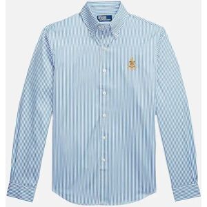 Classic Fit Stripe Shirt from Ralph Lauren, crafted from lightweight cotton poplin. Featuring a button-down collar, buttoned placket, long sleeves with buttoned barrel cuffs and a split back yoke with a box pleat ensuring a comfortable fit and a greater range of motion. Finished with a shield crest with a "Ralph Lauren" banner and "RLPC" embroidered on the left chest. 100% cotton. A1-25 710965413 Poplin Stripe Classic Fit Crest Shirt